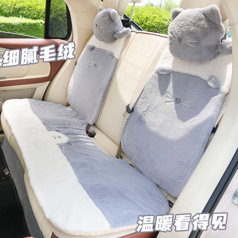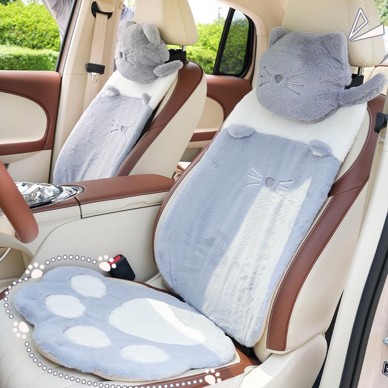冬季汽车坐垫高级感毛绒可爱猫爪车用保暖座垫舒适毛绒车载座椅套