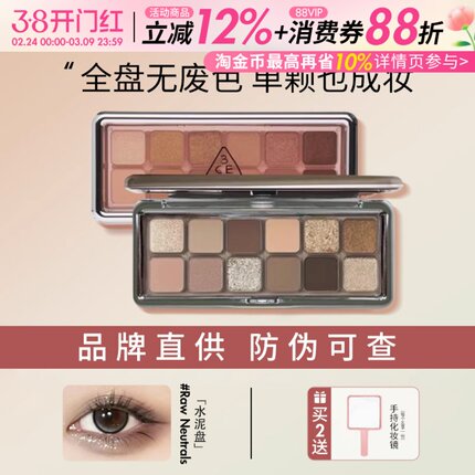 韩国3CE眼影盘水泥盘12色raw nuetrals大地橘棕芋泥盘smoother