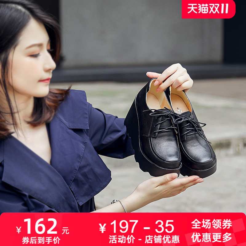 厚底春秋新款坡高跟舒适休闲单鞋