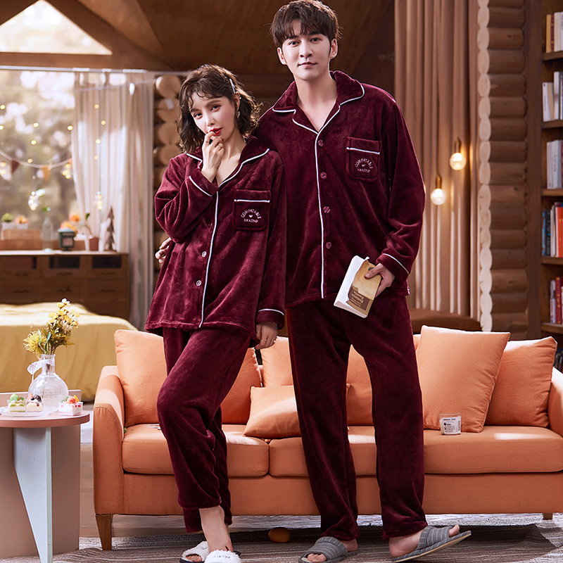 珊瑚绒睡衣女士秋冬季情侣加厚法兰绒加绒套装男家居服可外穿大码