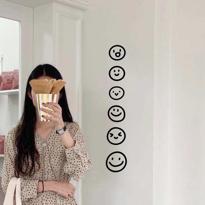 ins风笑脸 创意镜子自拍 咖啡奶茶店厨房玻璃门防撞墙贴装饰贴纸
