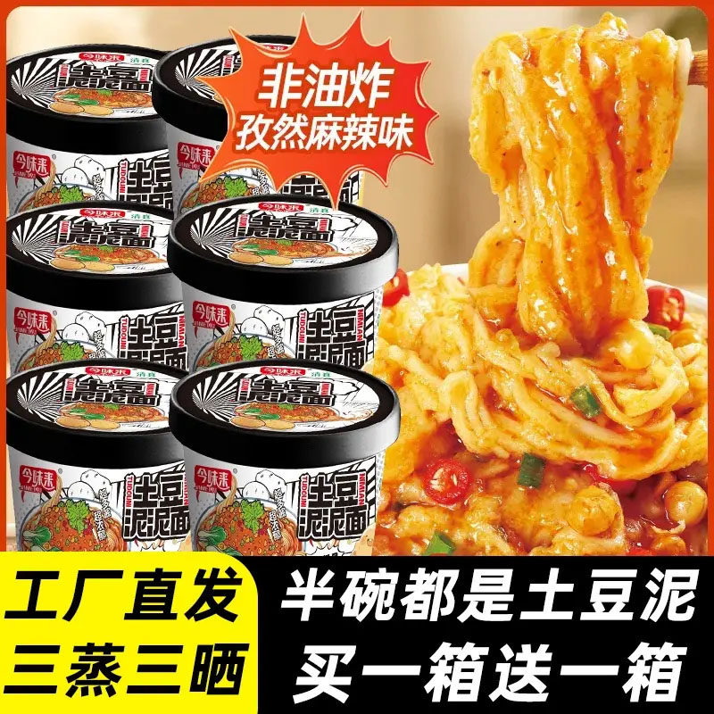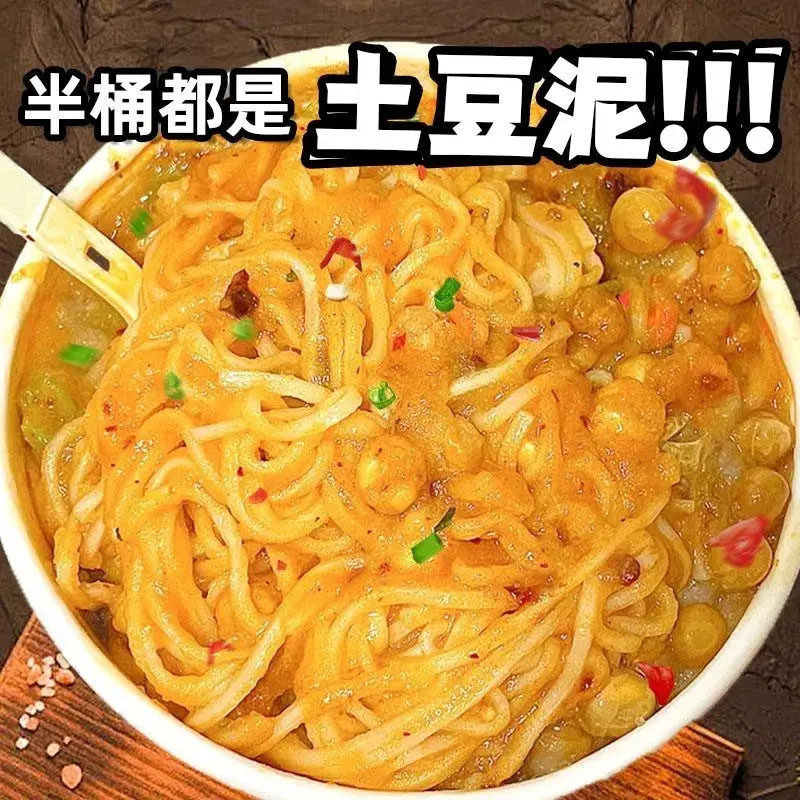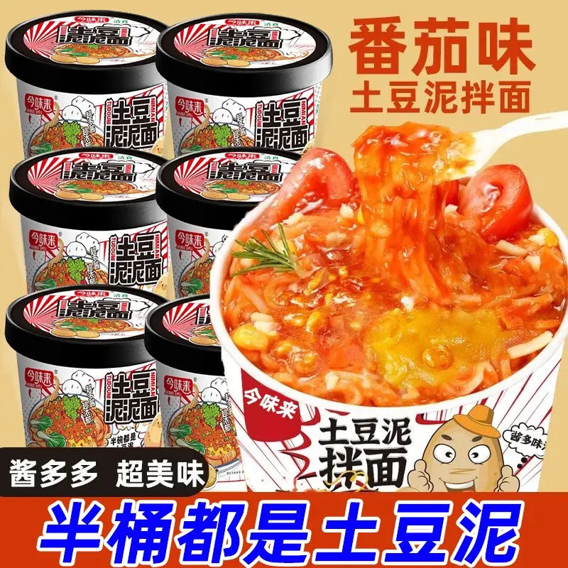 今土豆泥泥面拌面速食宵夜方便面拌粉面条桶装夜宵冲泡解馋香辣