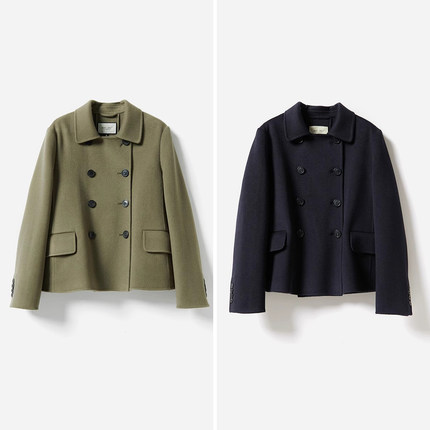 WWT06002 C@RV*N拍卖级110支羊毛羊绒双排扣双面呢短款大衣外套