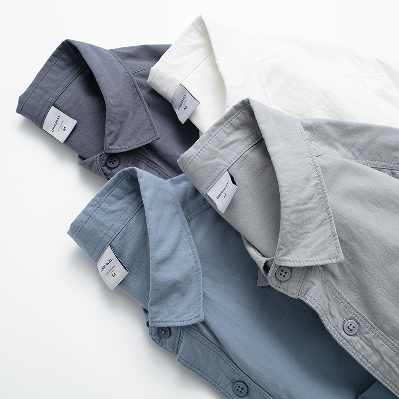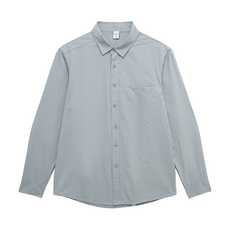 简约时尚纯色百搭尖领男士长袖衬衫春季新品全棉料透气吸汗寸衫薄