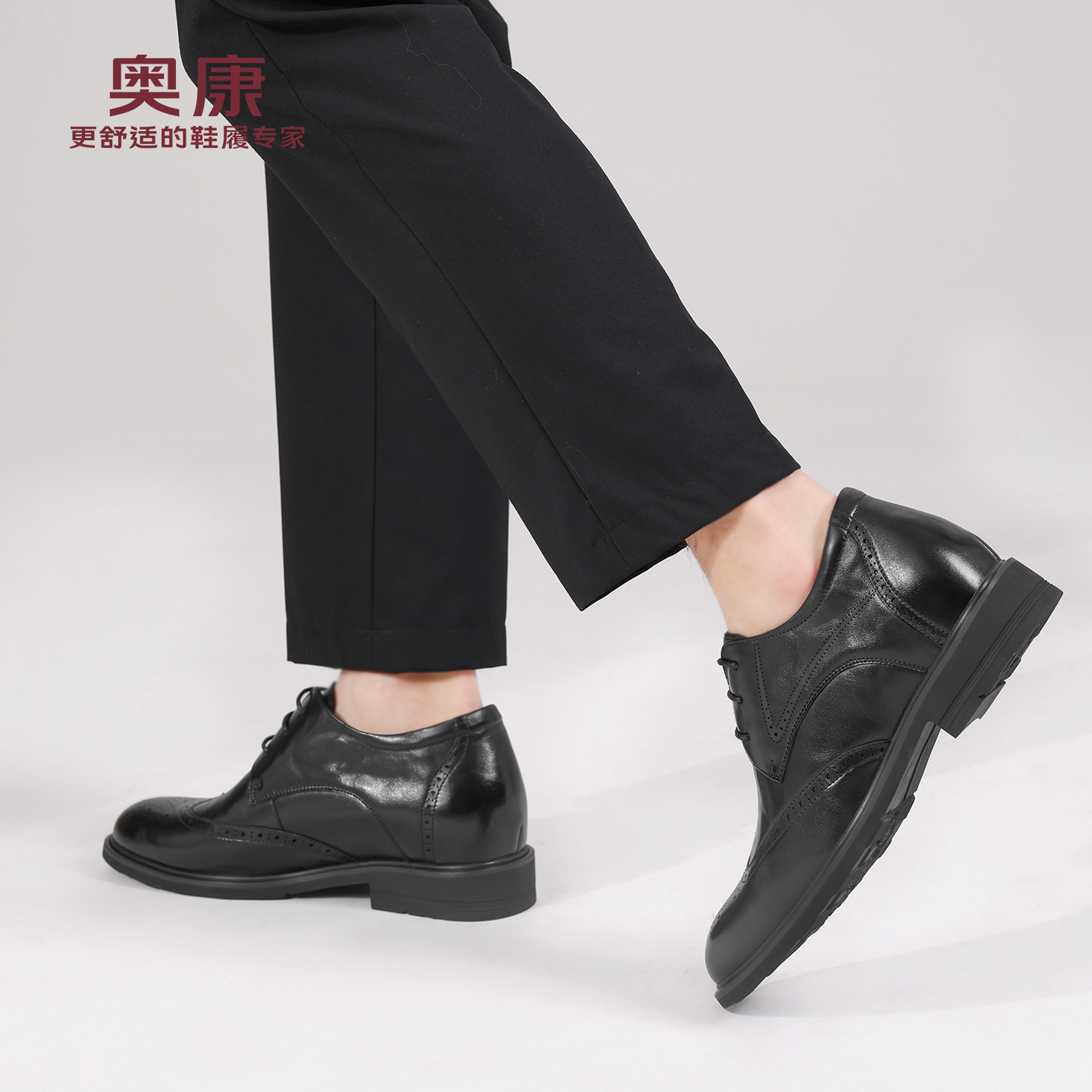 奥康 男鞋2025秋季新款真皮舒适布洛克皮鞋厚底增高男士皮鞋N