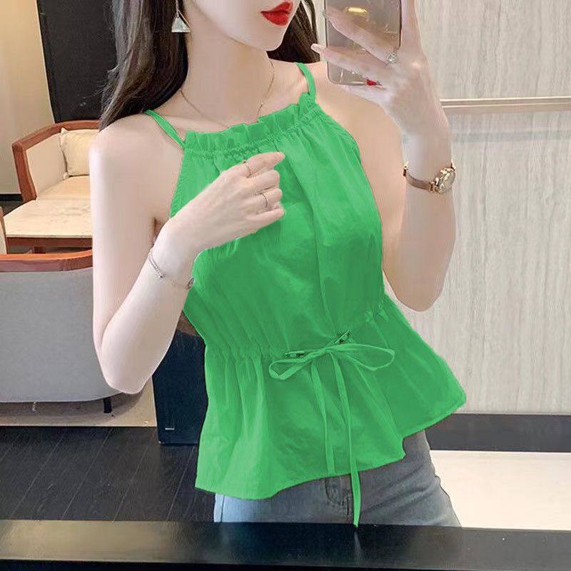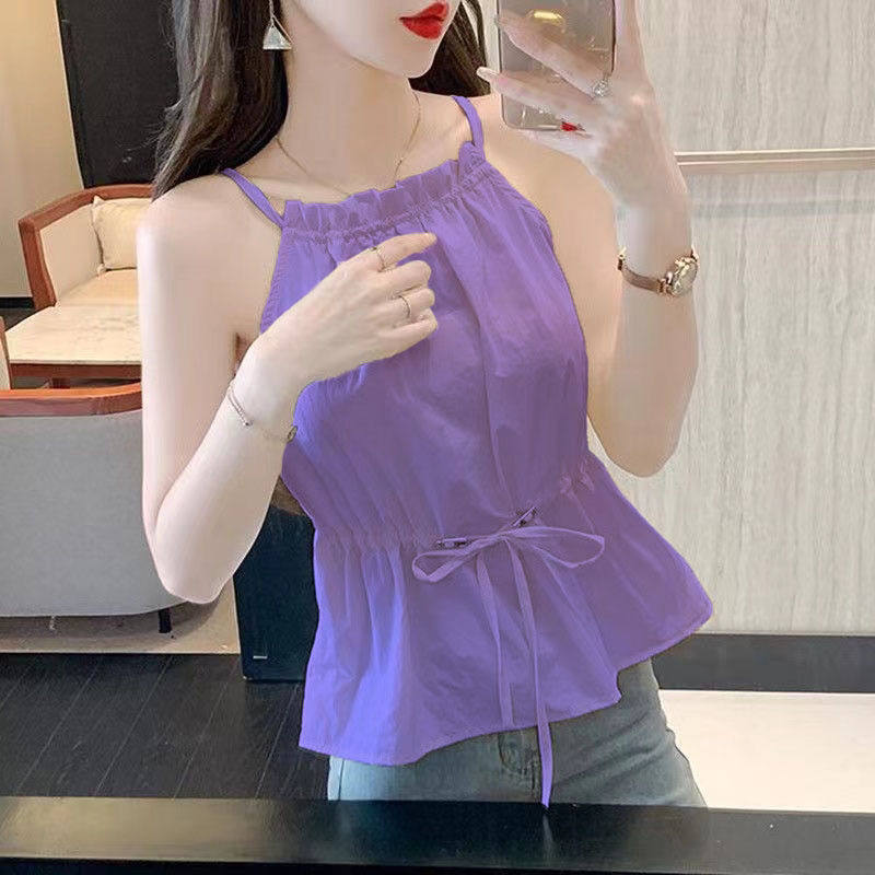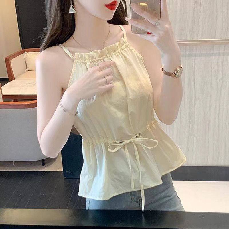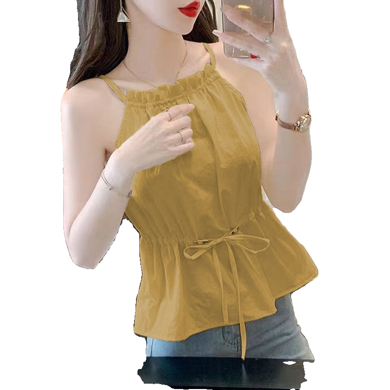 挂脖吊带背心女内搭2025夏季衬衫时尚雪纺显瘦抽绳新款无袖上衣女