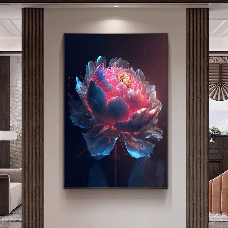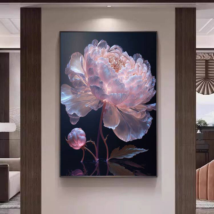 牡丹花现代简约玄关挂画轻奢花开富贵客厅沙发黑白北欧客厅装饰画