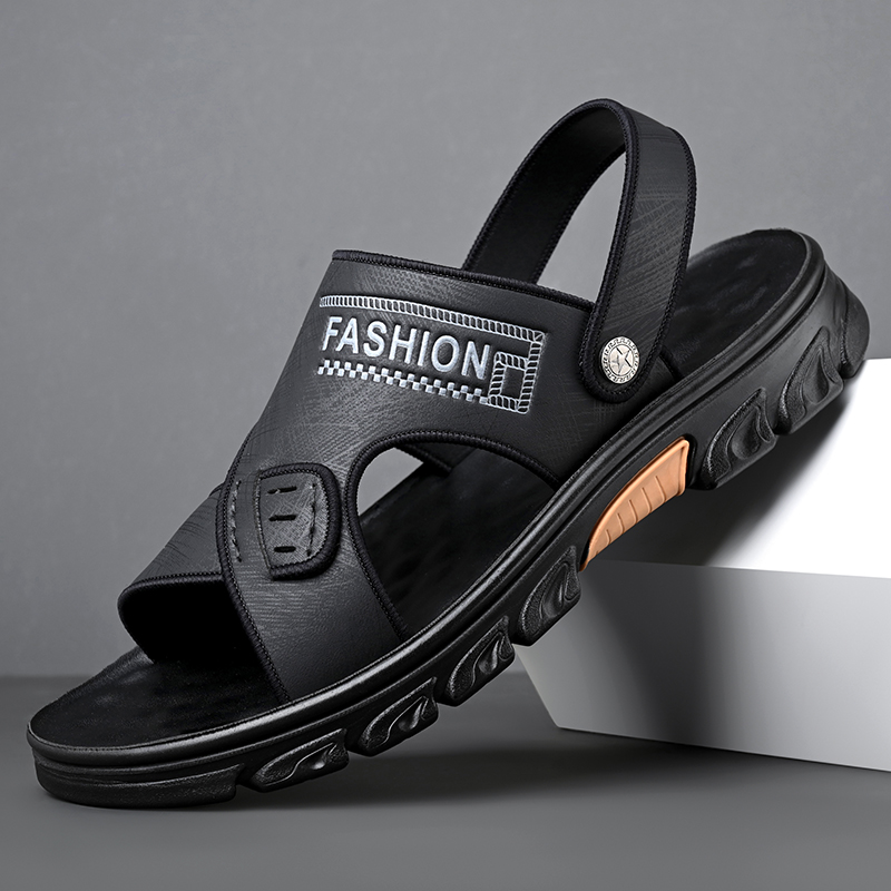 奥维格资姿牛皮夏季男士百搭凉鞋防滑耐磨两穿沙滩鞋子加里奥男鞋