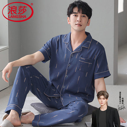 浪莎2026年新款睡衣男士夏季纯棉短袖长裤家居服男款夏天夏款套装