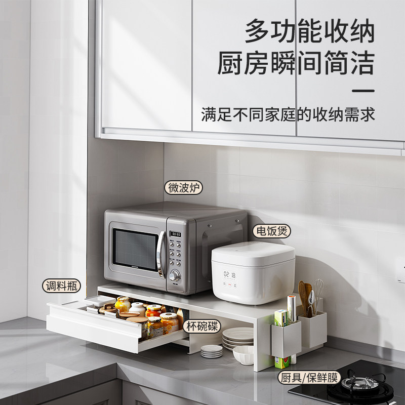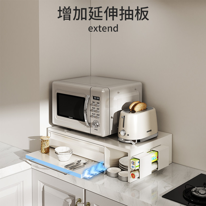 a生厨房微波炉置物架分层可伸缩橱柜调料收纳架子电饭煲烤箱支架
