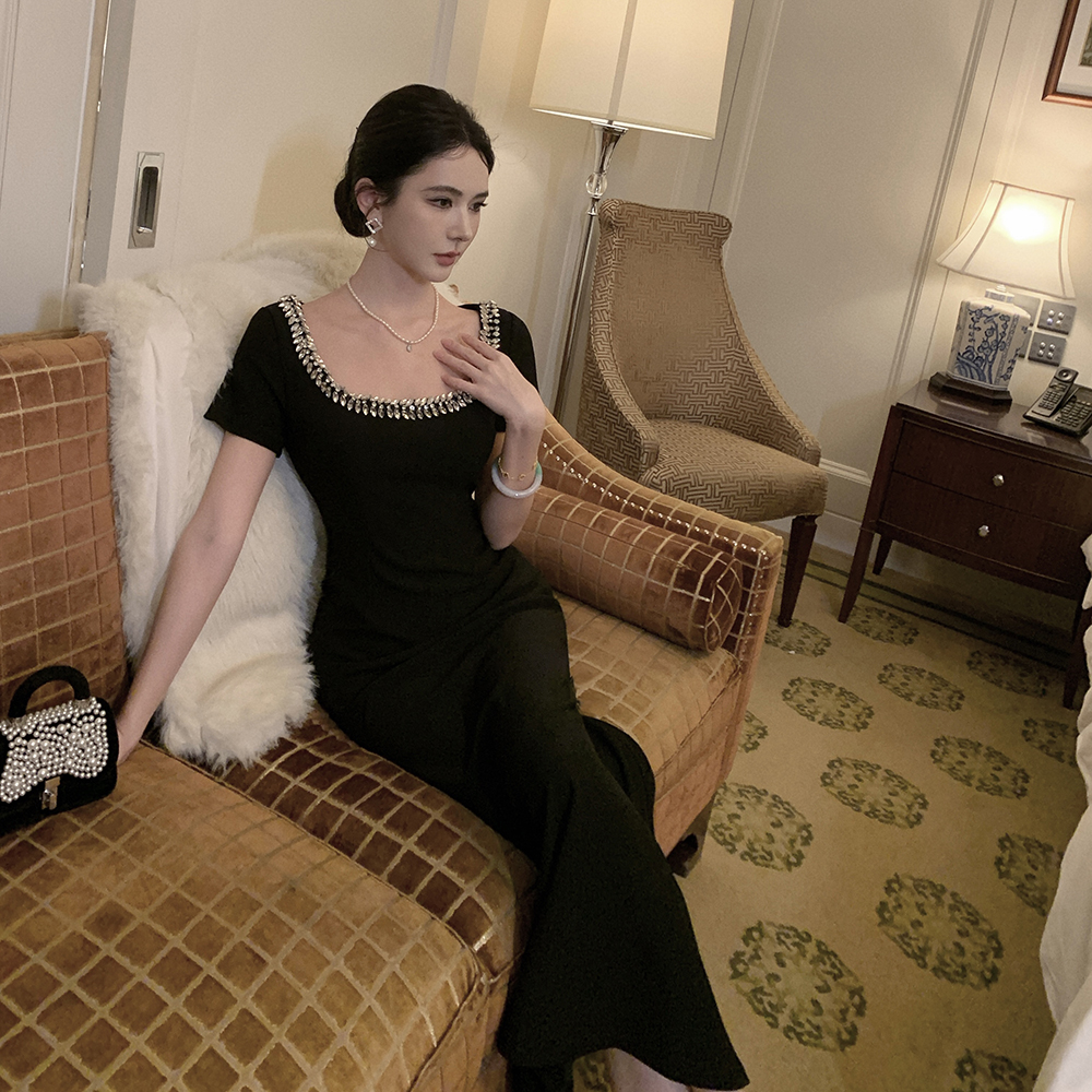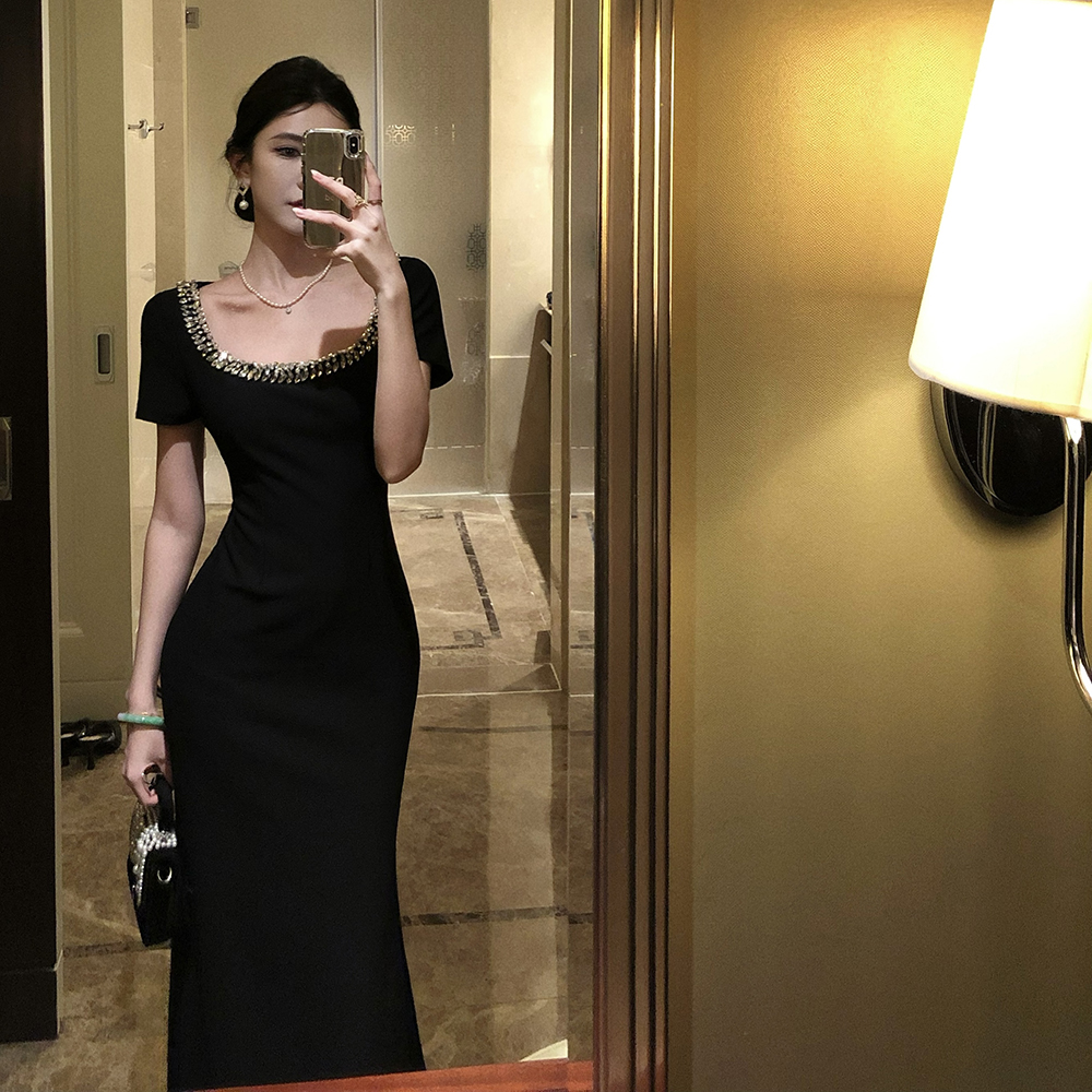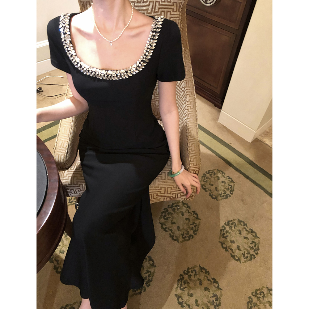 轻奢设计师感长款修身显瘦聚会礼服连衣裙2025春季新款心机女装