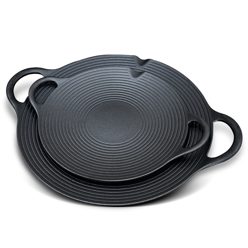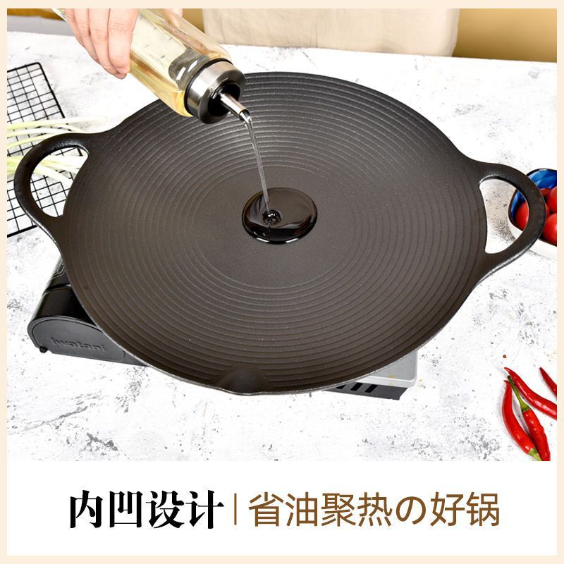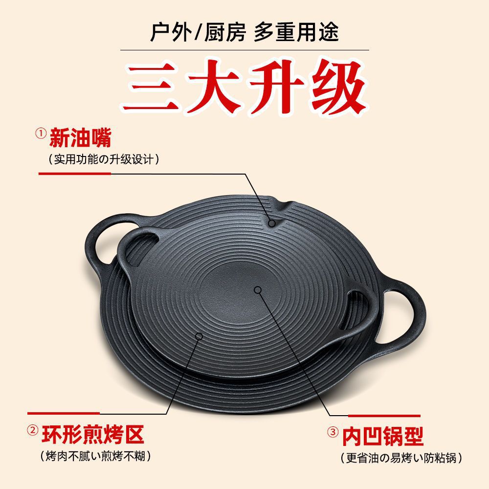 铸铁烧烤盘户外麦饭石烤肉盘煎肉烤盘便携式烧烤锅电磁炉燃气通用