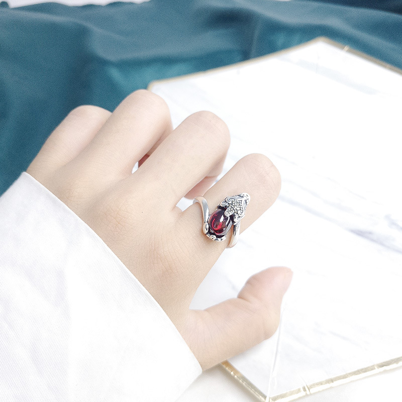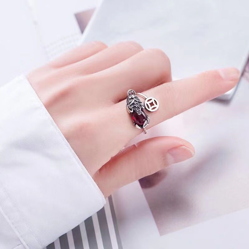 复古貔貅戒指S925纯银可调节食指环尾戒女士款ins潮个性小众设计