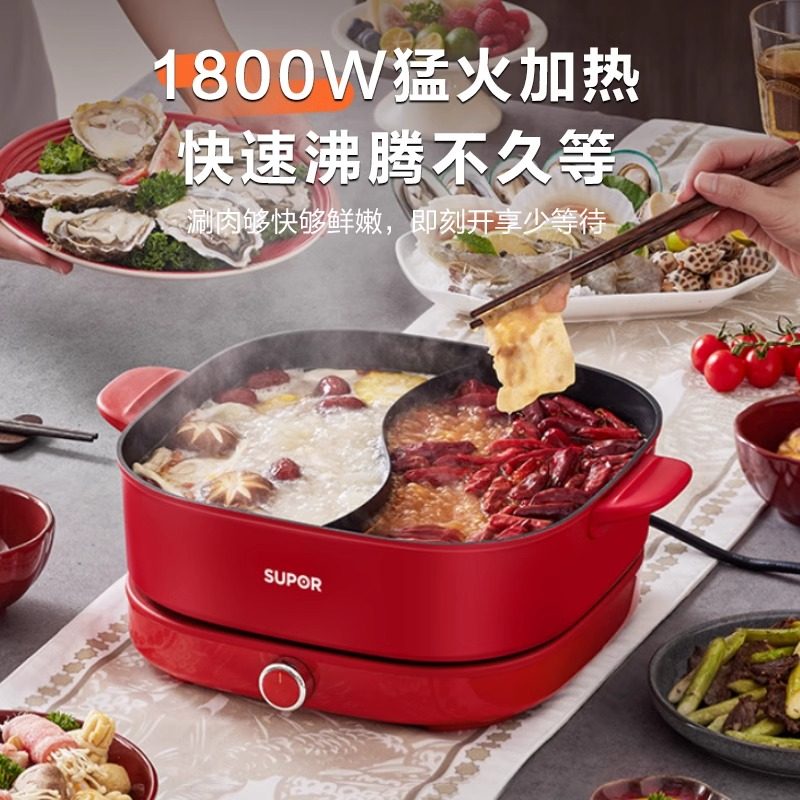 苏泊尔电火锅家用多功能料理超薄分体式鸳鸯锅炒煎电煮锅电炒锅