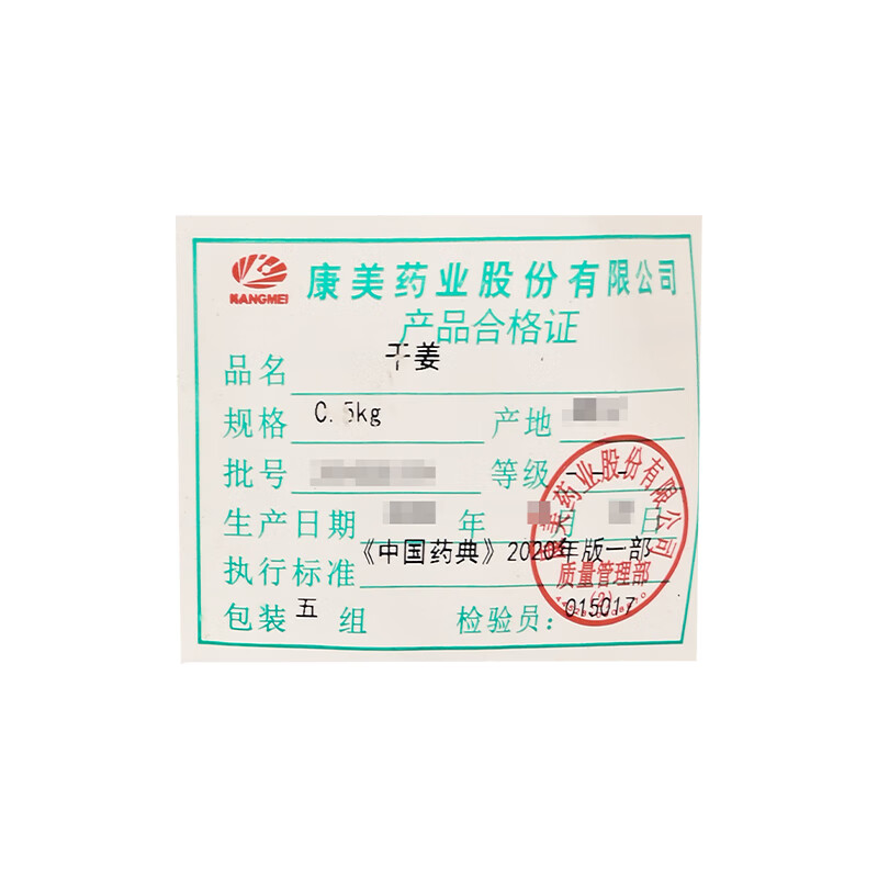 康美药业 干姜 500g 中药材店铺饮片白姜均姜干生姜官方四川