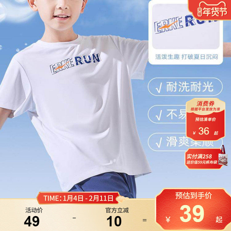 鸿星尔克童装男童短袖T恤圆领儿童短裤夏季新款大童透气运动上衣