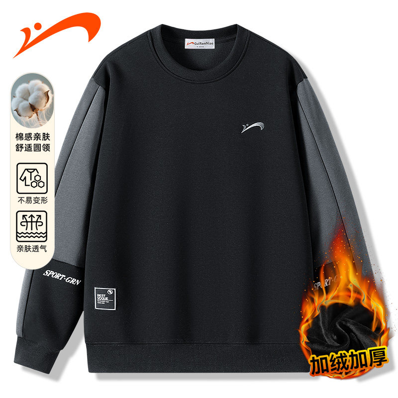 贵人鸟秋冬加绒圆领长袖运动卫衣