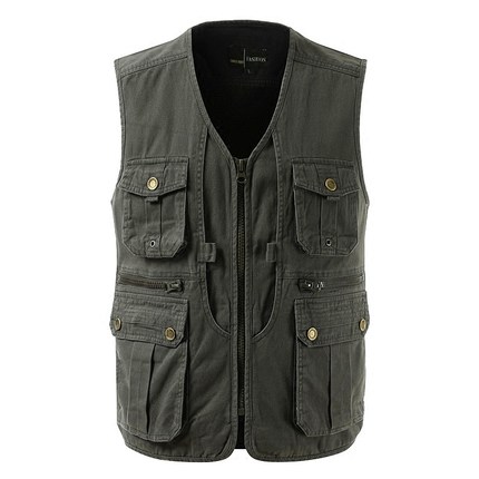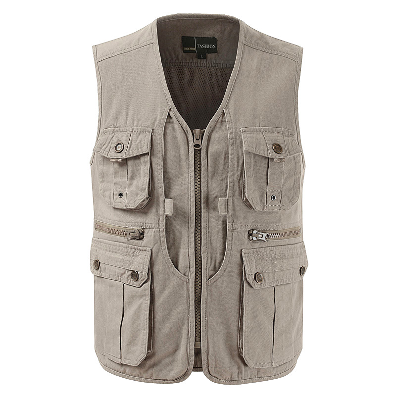 中老年马甲男春秋款纯棉多口袋背心户外钓鱼记者摄影马甲V领坎肩