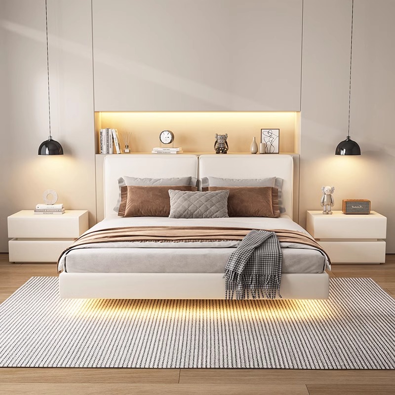 喜临门实木奶油风床头柜高级感双层落地免安装床边柜卧室家用简约