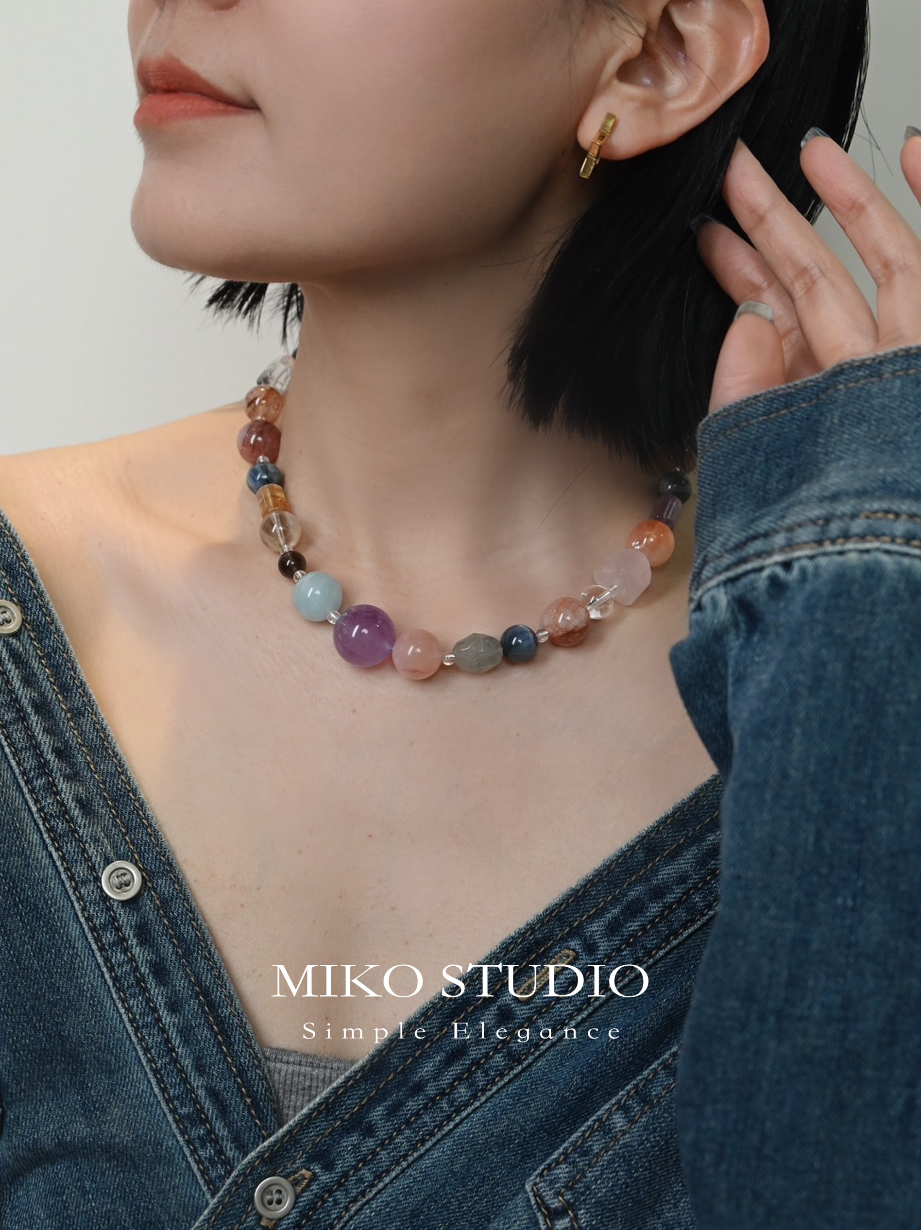 夏季新款天然多宝水晶项链紫水晶蓝水晶招财明星同款颈链时尚百搭