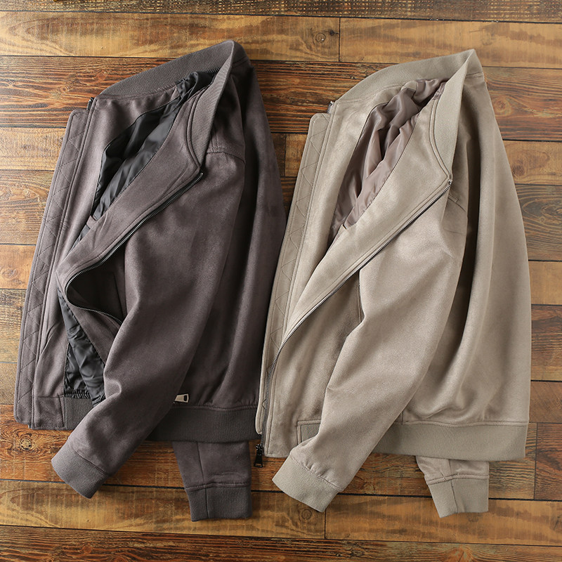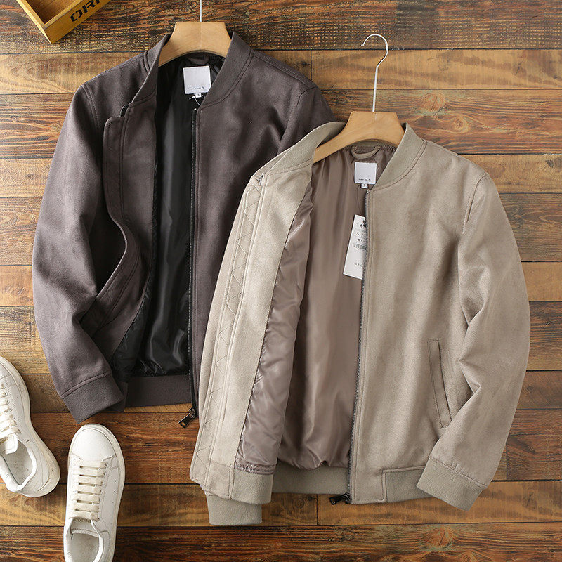 千元级原单品质!西班牙高定麂皮绒棒球领夹克男士春秋休闲外套潮