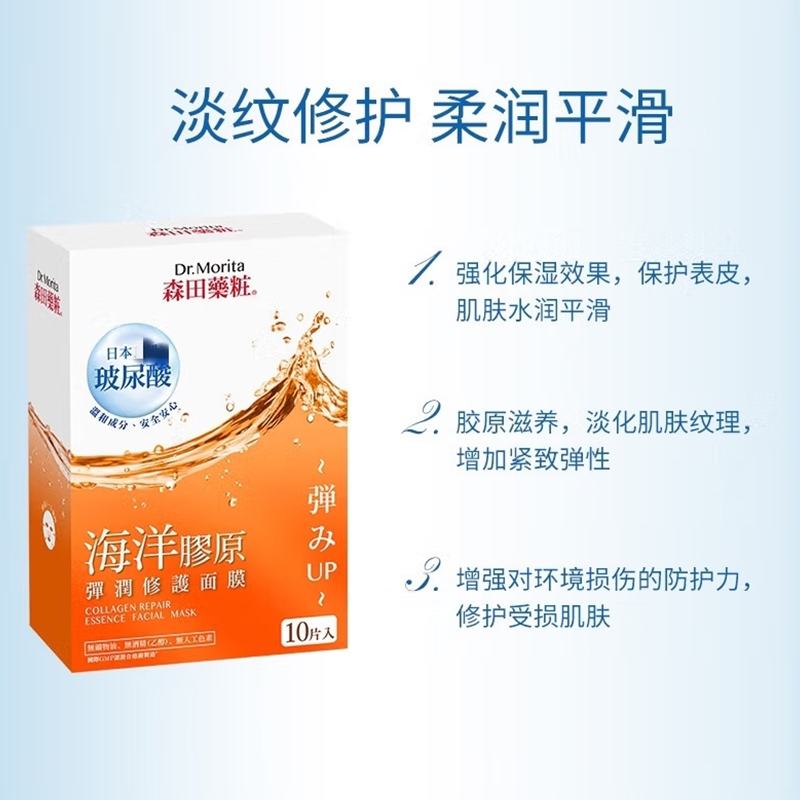 森田药妆三重玻尿酸海洋胶原弹润面膜10片 补水保湿 紧致舒缓肌肤