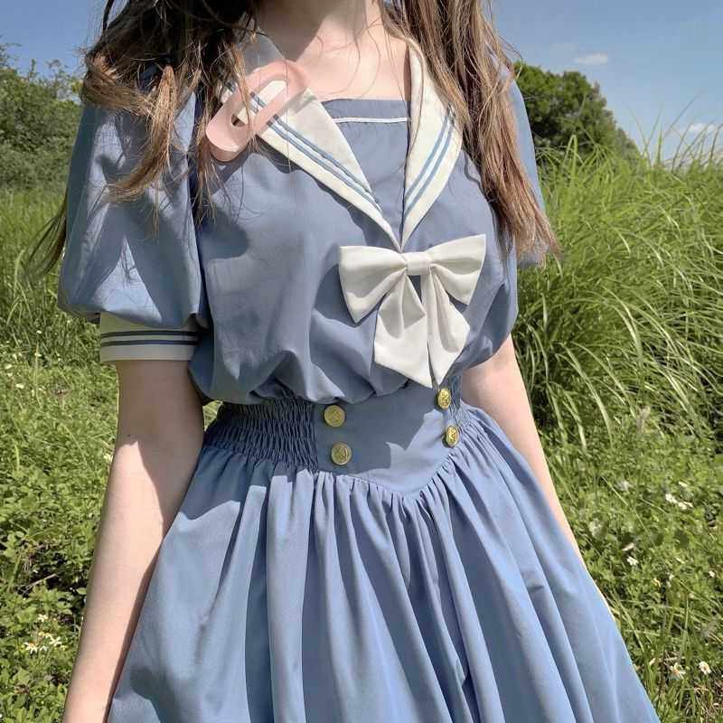 2024夏季新款日系学院风水手服连衣裙女夏学生宽松海军领a字裙子