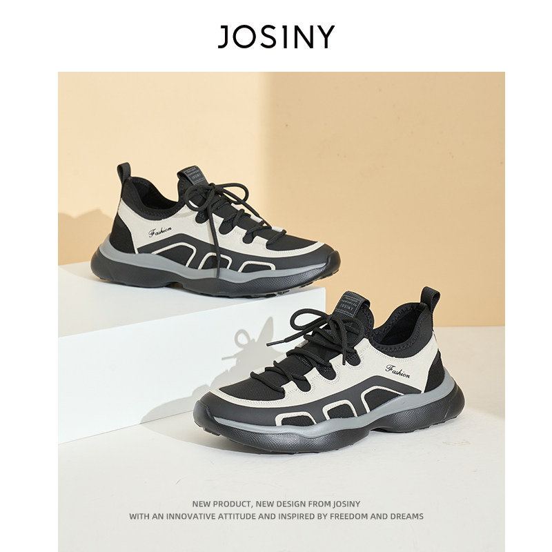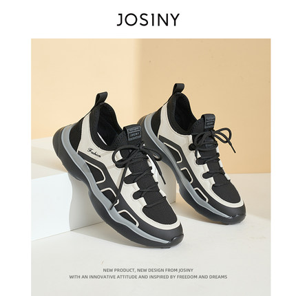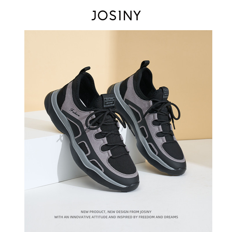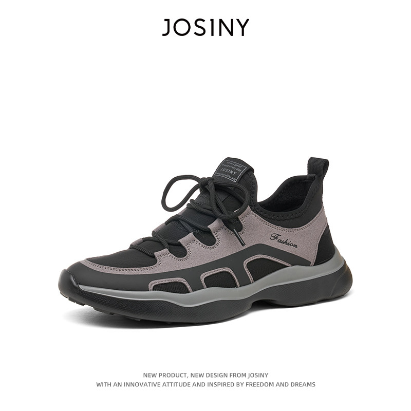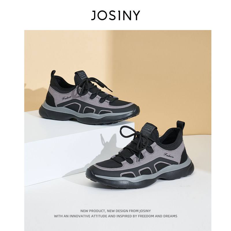 卓诗尼春秋季新款男士单鞋子圆头系带低帮运动休闲松糕底百搭商务