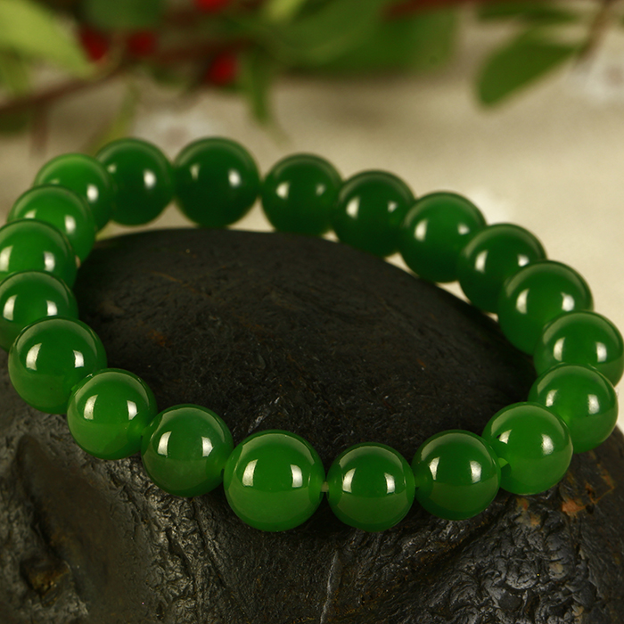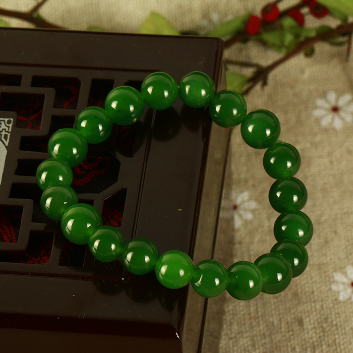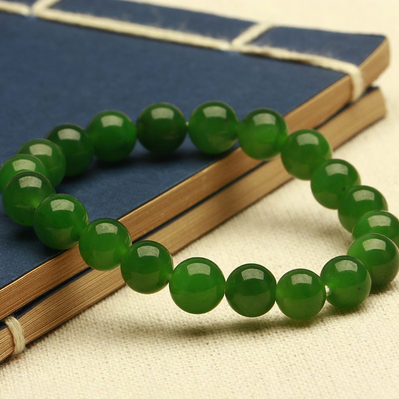 新疆和田玉碧玉手链天然手串老坑菠菜绿圆珠项链散珠转运佛珠8mm