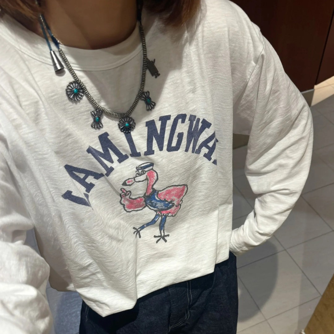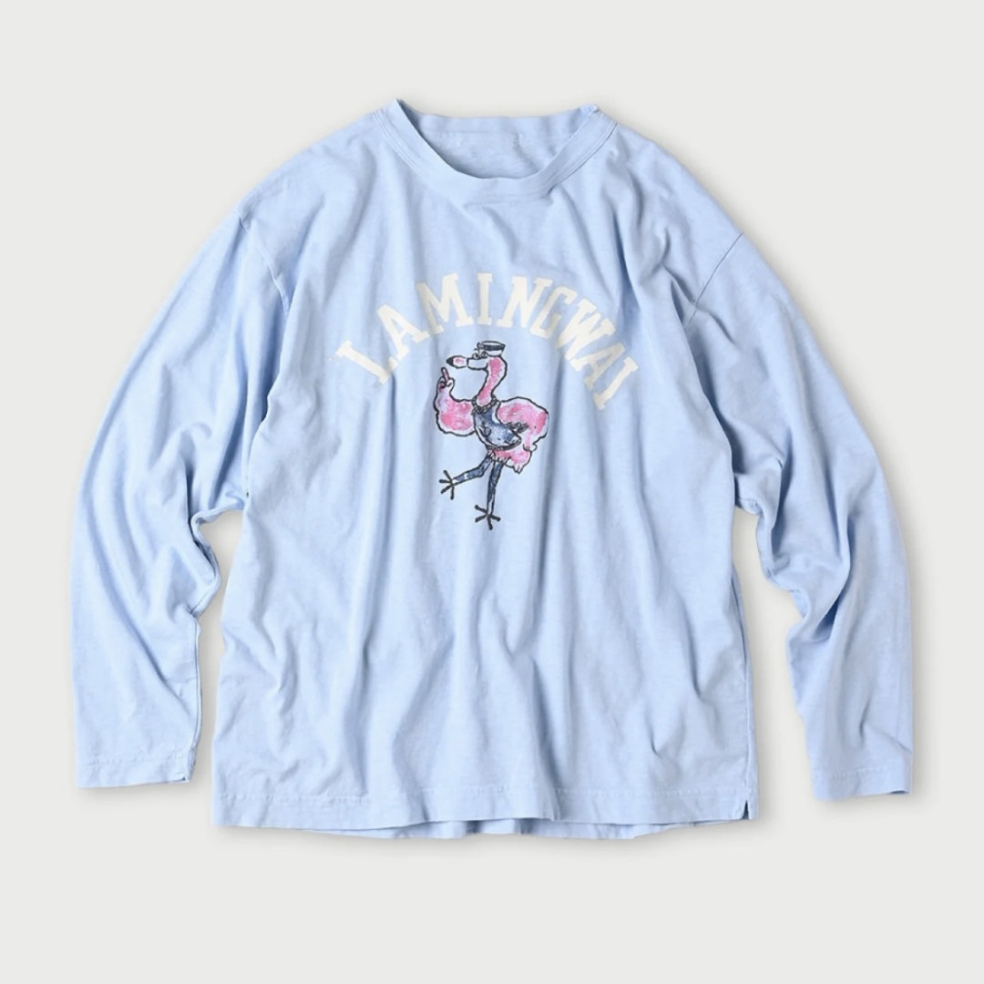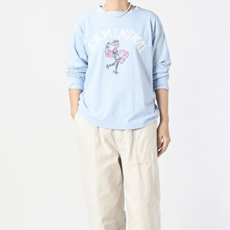 日系25秋冬新品火烈鸟字母卡通后口袋长袖竹节棉T恤百搭上衣女