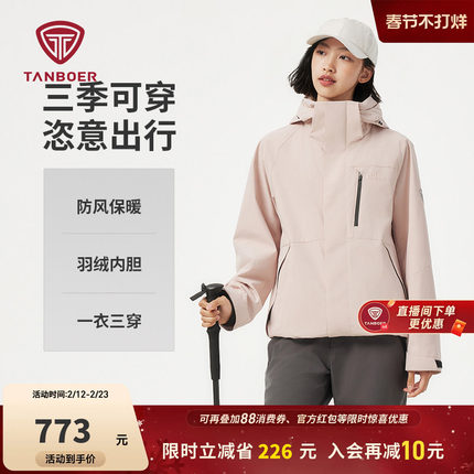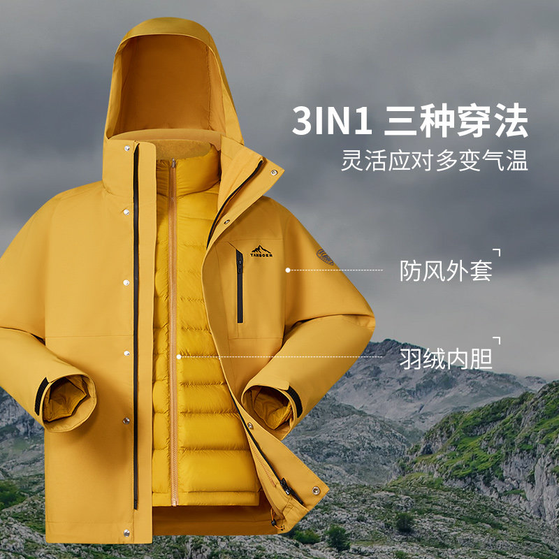 坦博尔秋冬奥莱男女同款羽绒服户外防风运动三合一可脱卸内胆外套