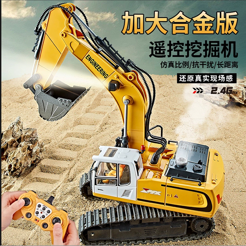 遥控挖掘机玩具2.4G合金男孩电动1:24工程车9挖土机儿童遥控汽车