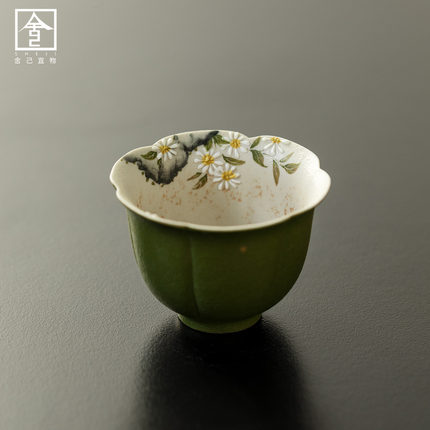 小青柑手绘莲瓣茶杯陶瓷女士一人饮品茗杯单个功夫茶具主人杯