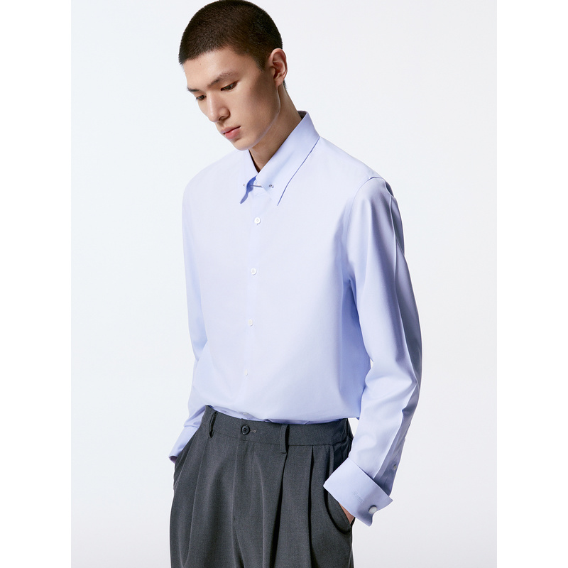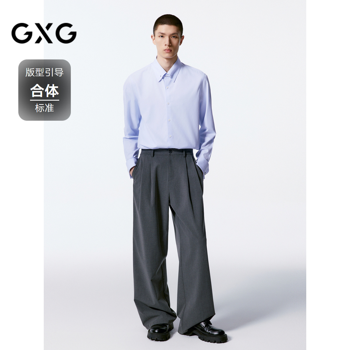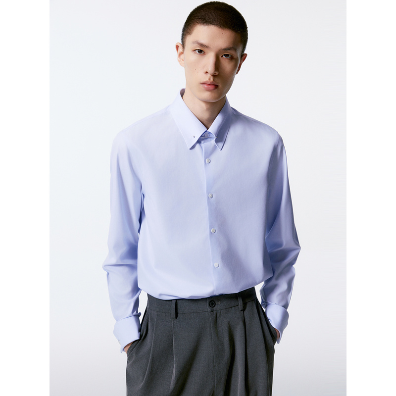 GXG男装 多色基础通勤免烫翻领长袖衬衫24年秋季品G24X033035