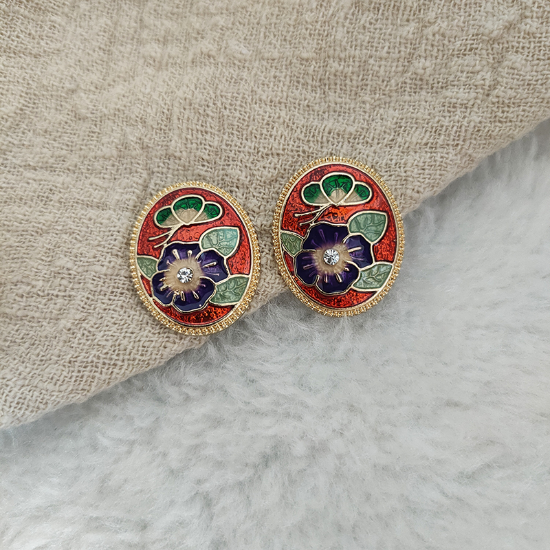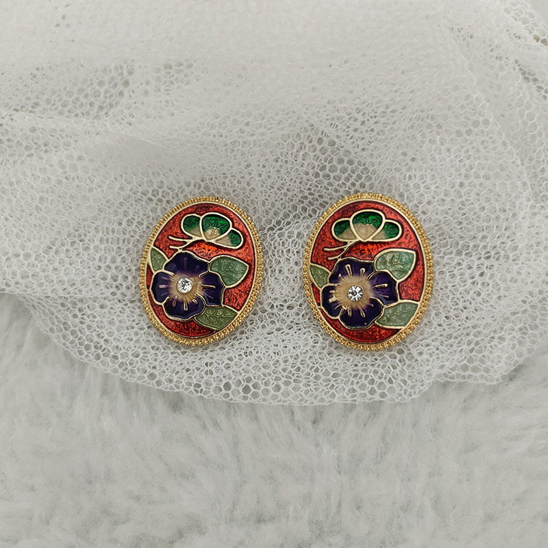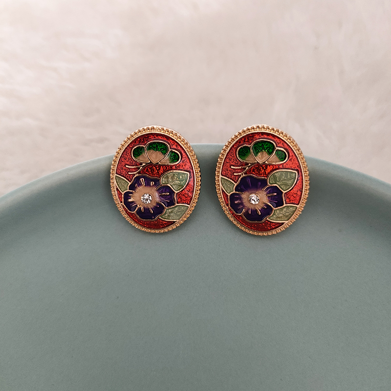 中式复古风耳钉风圆形花卉中式