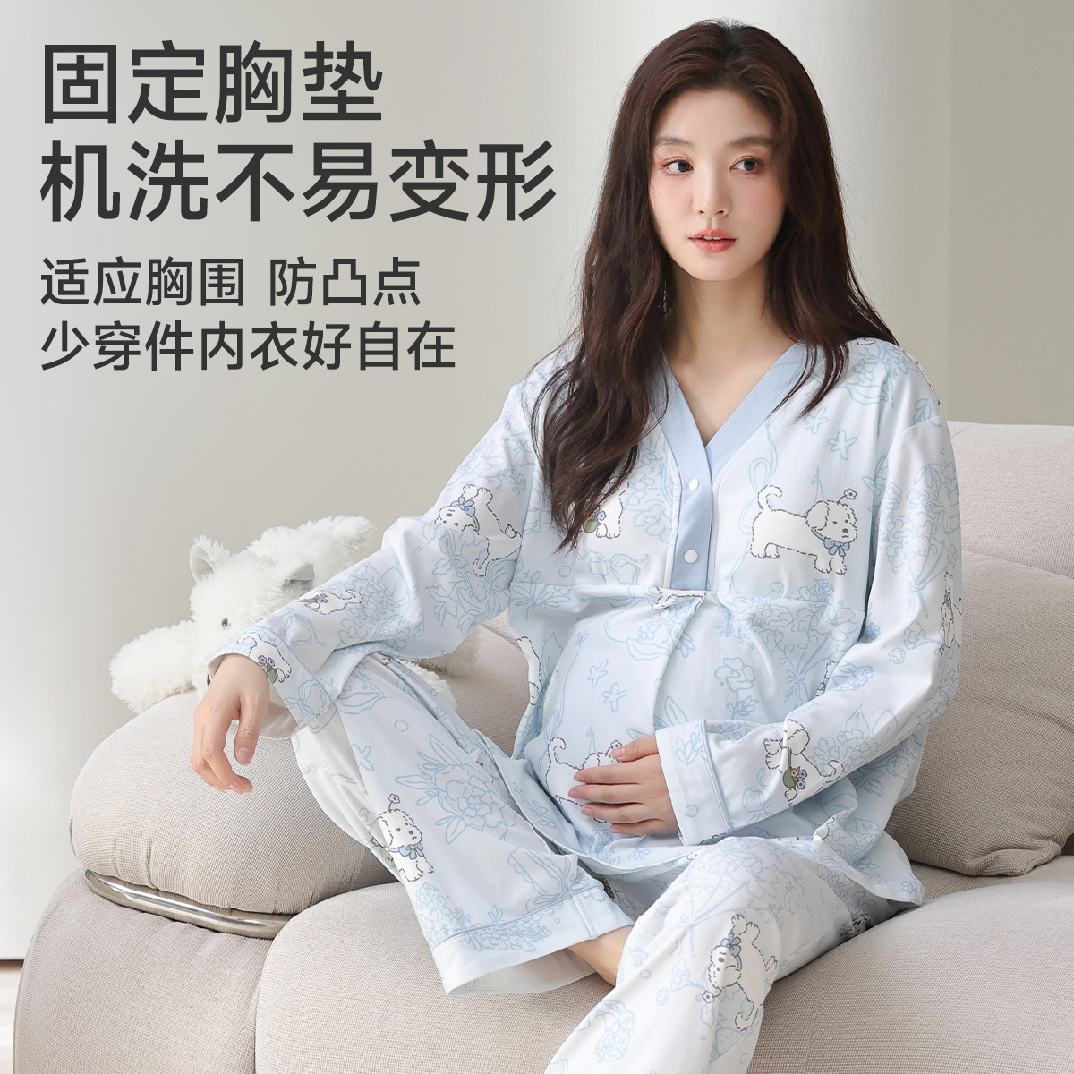 婧麒带胸垫月子服纯棉产后冬哺乳睡衣孕妇喂奶待产产妇家居服套装