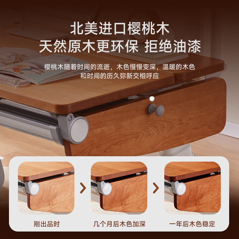 德国北美樱桃木电动升降桌儿童学习桌家用写字桌椅套装实木书桌