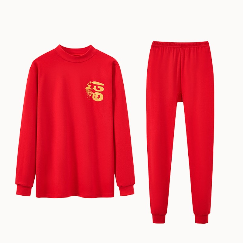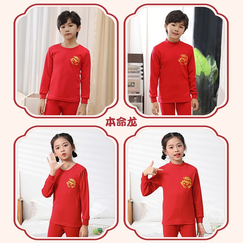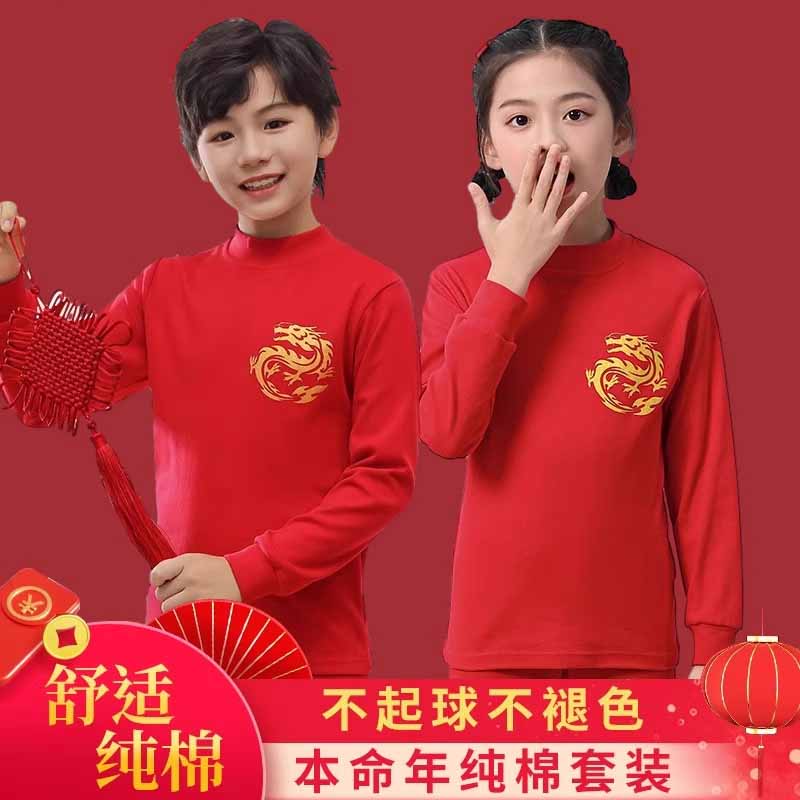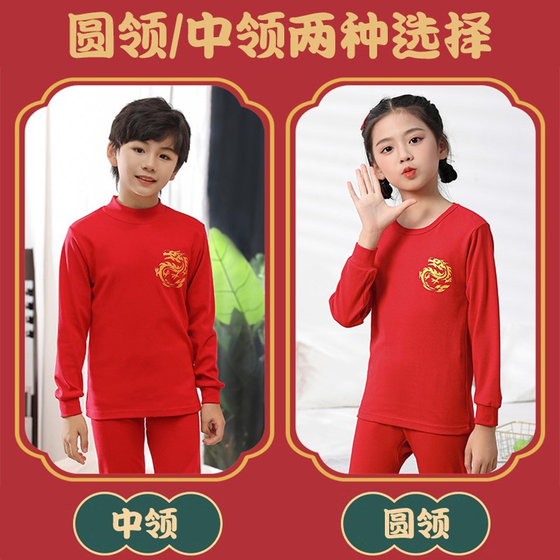现货速发儿童保暖内衣套装龙年新款男童秋衣秋裤本命年红色睡衣家