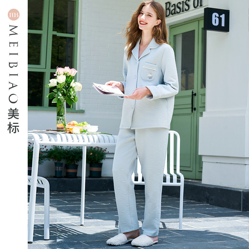 美标新款空气层夹棉纯棉睡衣套装女秋冬全棉可外穿休闲夹层家居服