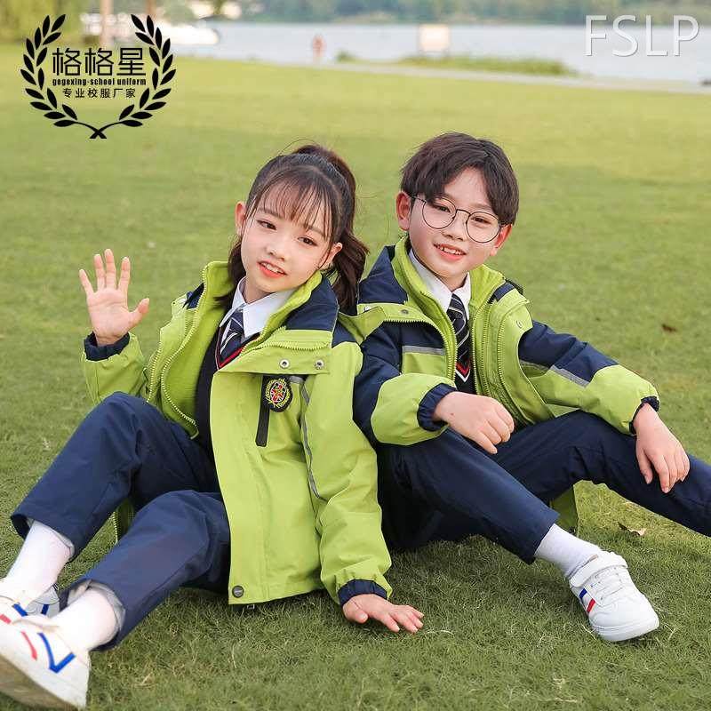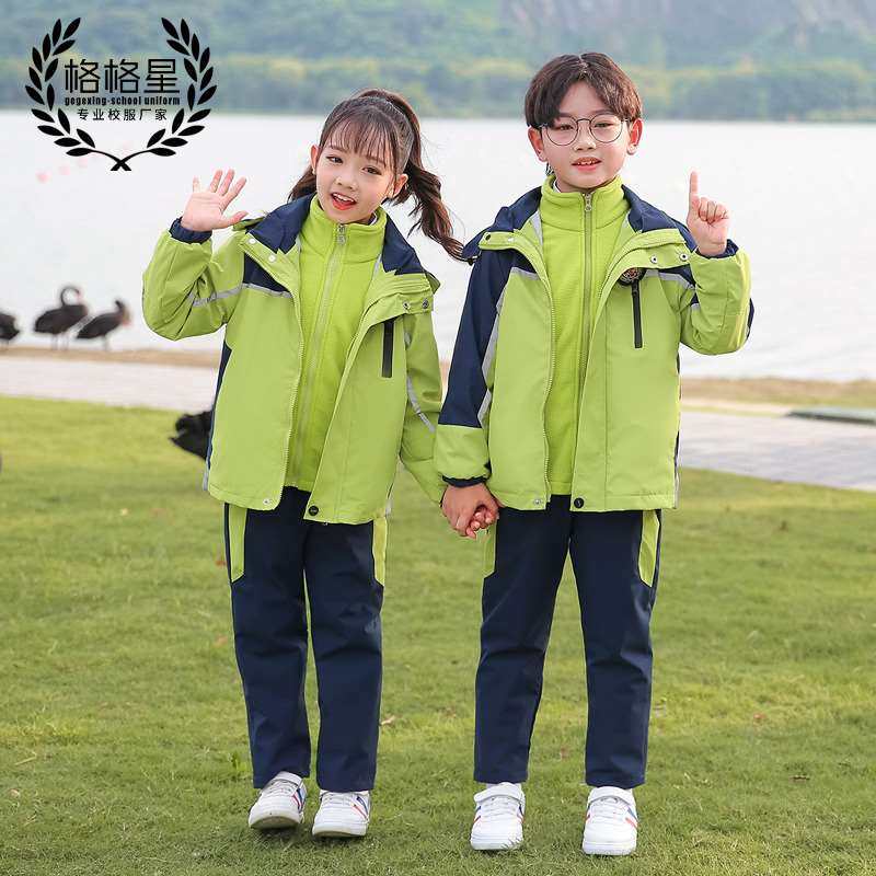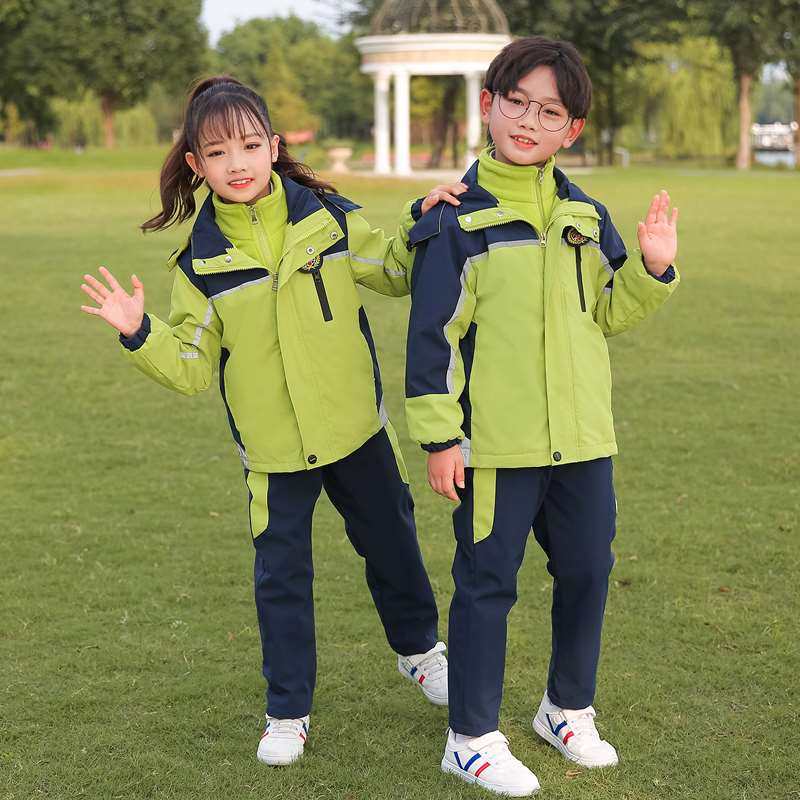 小学生校服秋冬装套装幼儿园绿色园服儿童运动加绒冬季冲锋衣班服
