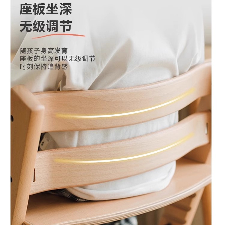 TT成长椅宝宝儿童多功能实木餐椅北欧同款进口榉木可调学习座椅