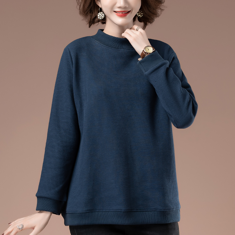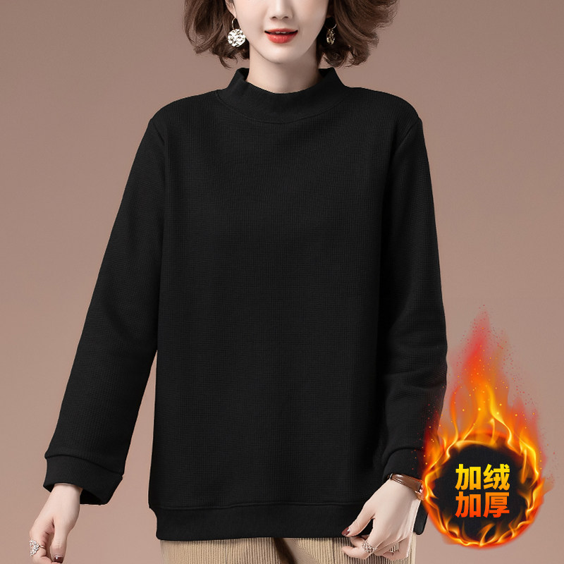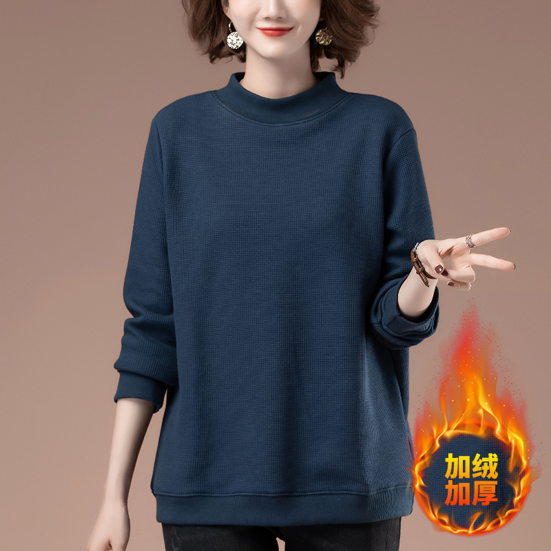 冬季加肥加大码卫衣女加绒加厚宽松显瘦套头中长款半高领打底衫女
