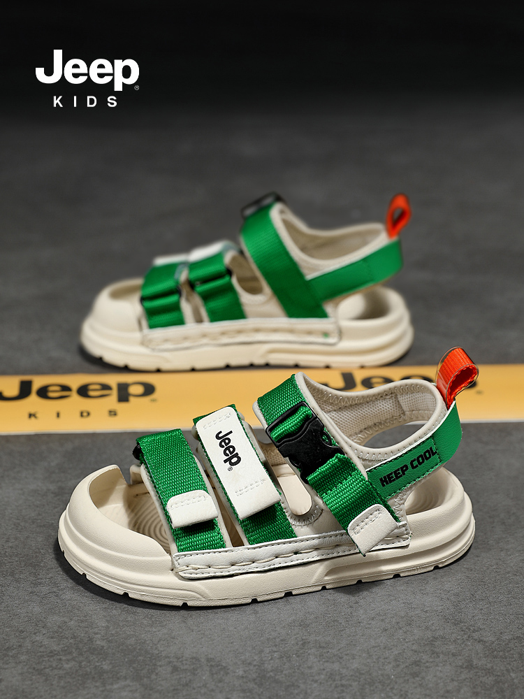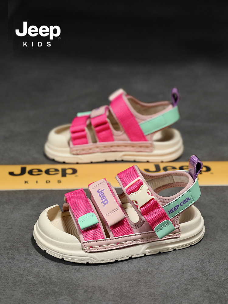 jeep儿童包头凉鞋夏季2025新款魔术贴露趾鞋子女童软底男童沙滩鞋