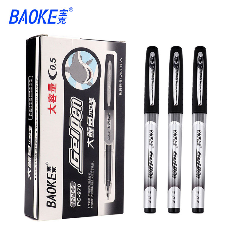 宝克中性笔PC978大容量商务签字笔0.5mm走珠笔芯签名笔碳素墨水笔中性笔替芯水笔芯黑色红色12支