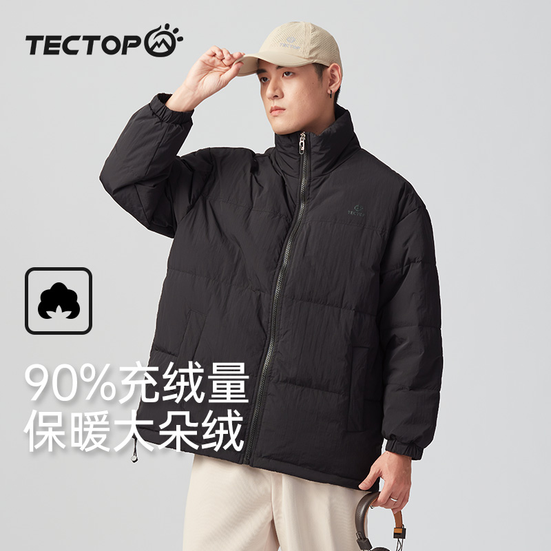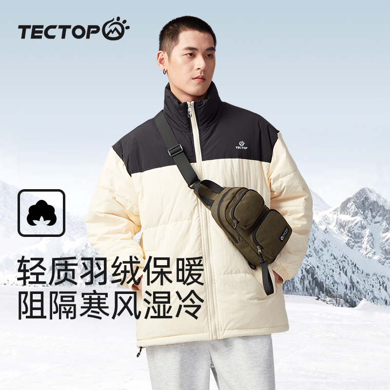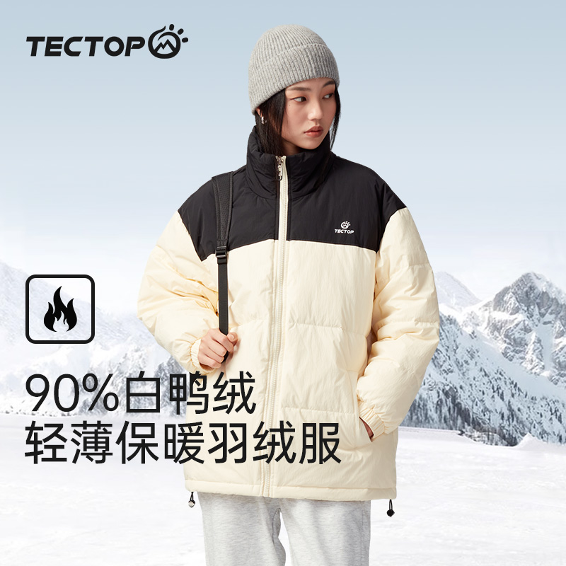 探拓户外拼色羽绒服男女冬季轻薄韩版宽松立领保暖白鸭绒短款外套
