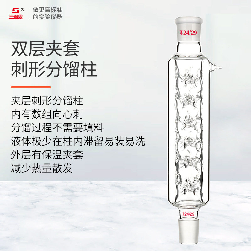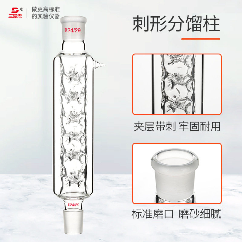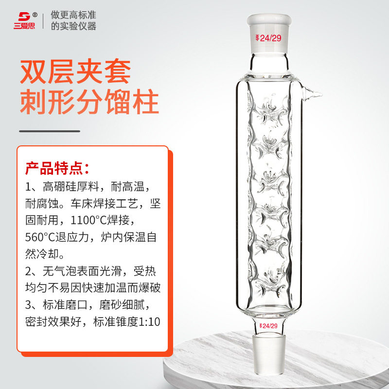 三爱思高硼硅双层刺形分馏柱夹套玻璃精馏柱210MM/24*2具刺冷凝管