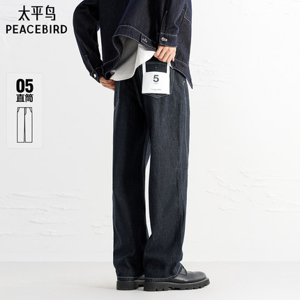 太平鸟男装牛仔裤秋季新款明线纯棉牛仔原牛宽松直筒撞钉长裤潮K