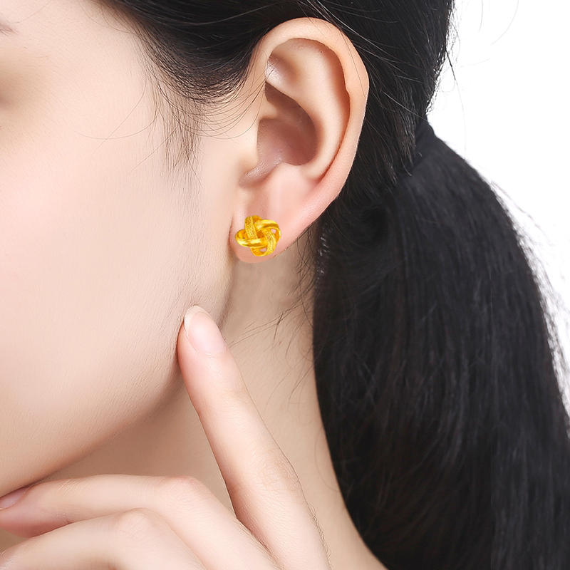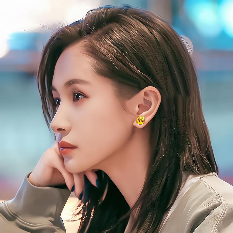 沙金耳钉仿真黄金耳丁女金色耳饰耳环新款镀金耳线耳坠不掉色首饰