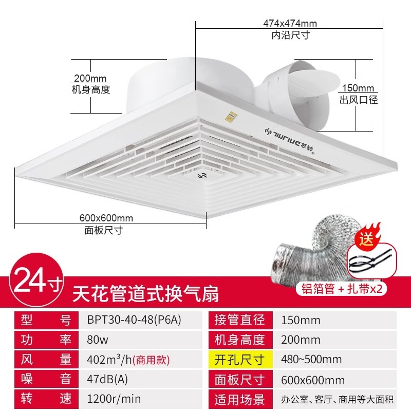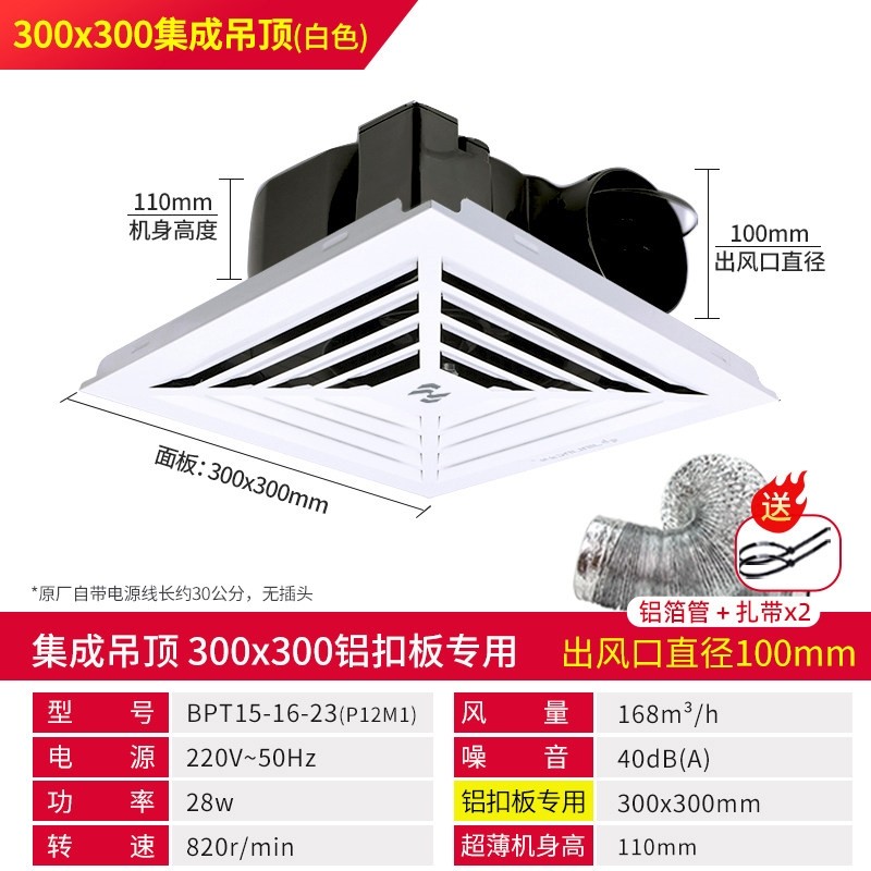 金羚铝扣板排气扇集成吊顶换气扇花管道式300x300超薄强力静音天