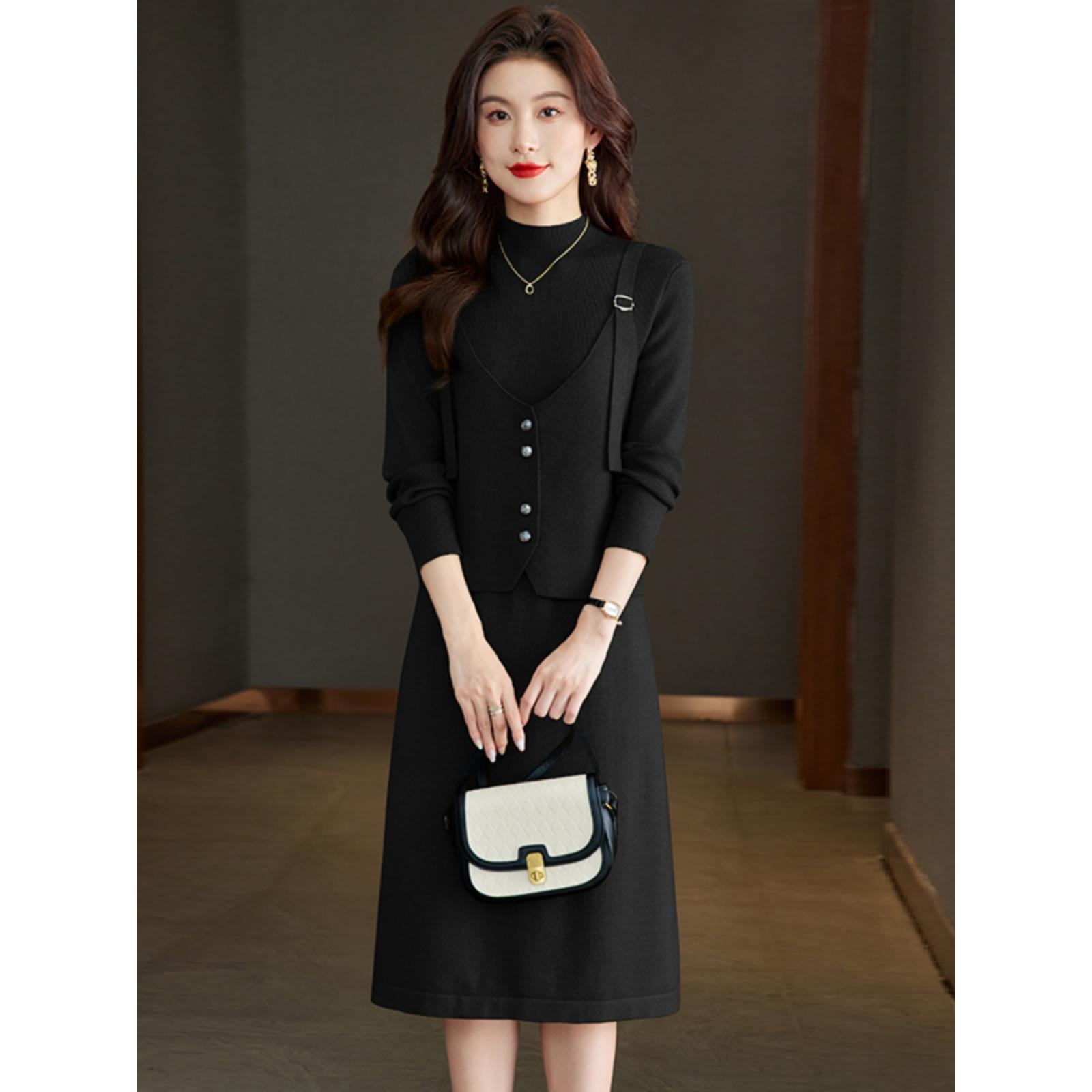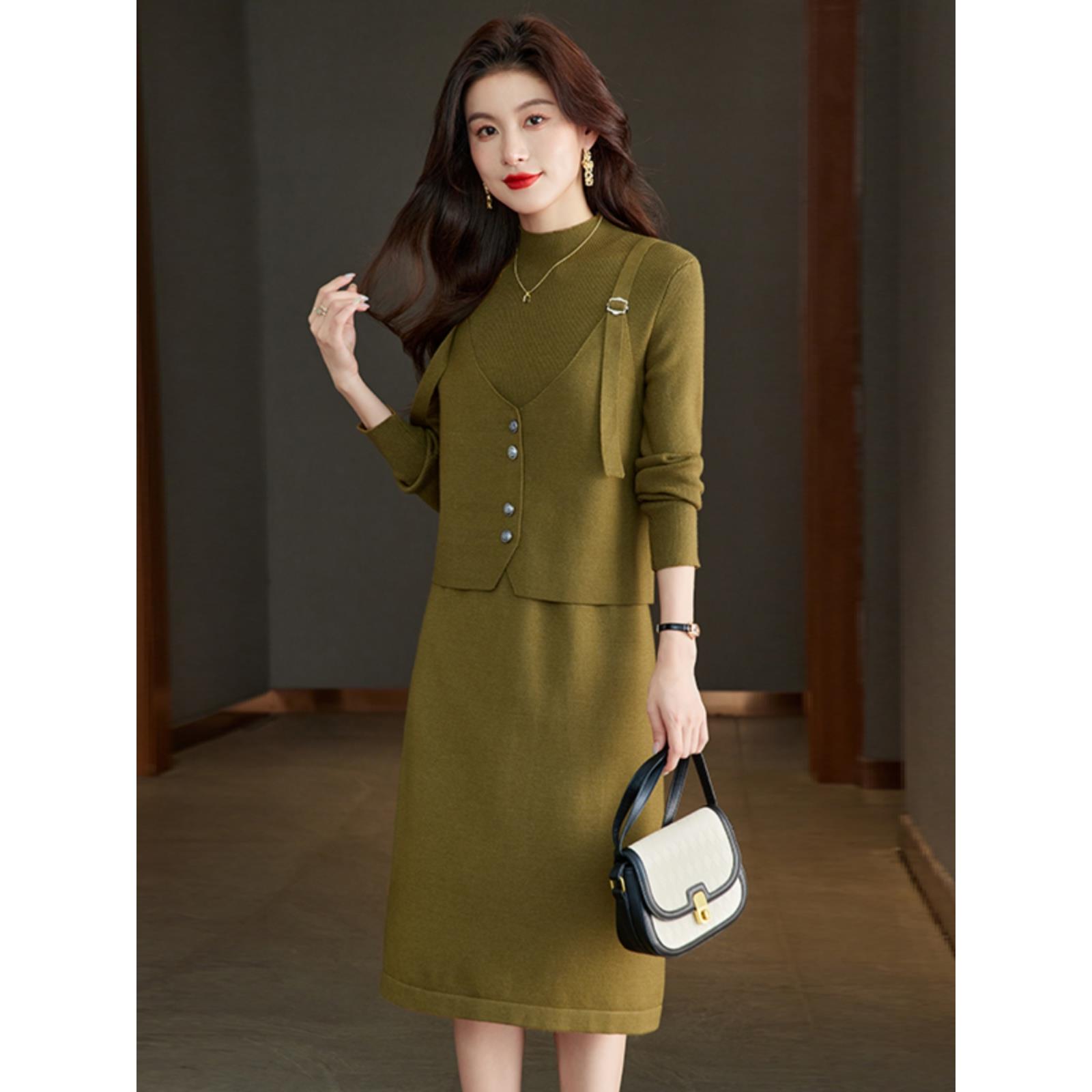 羊绒打底背心毛衣裙女两件套装中长款2025秋冬季针织羊毛连衣裙子